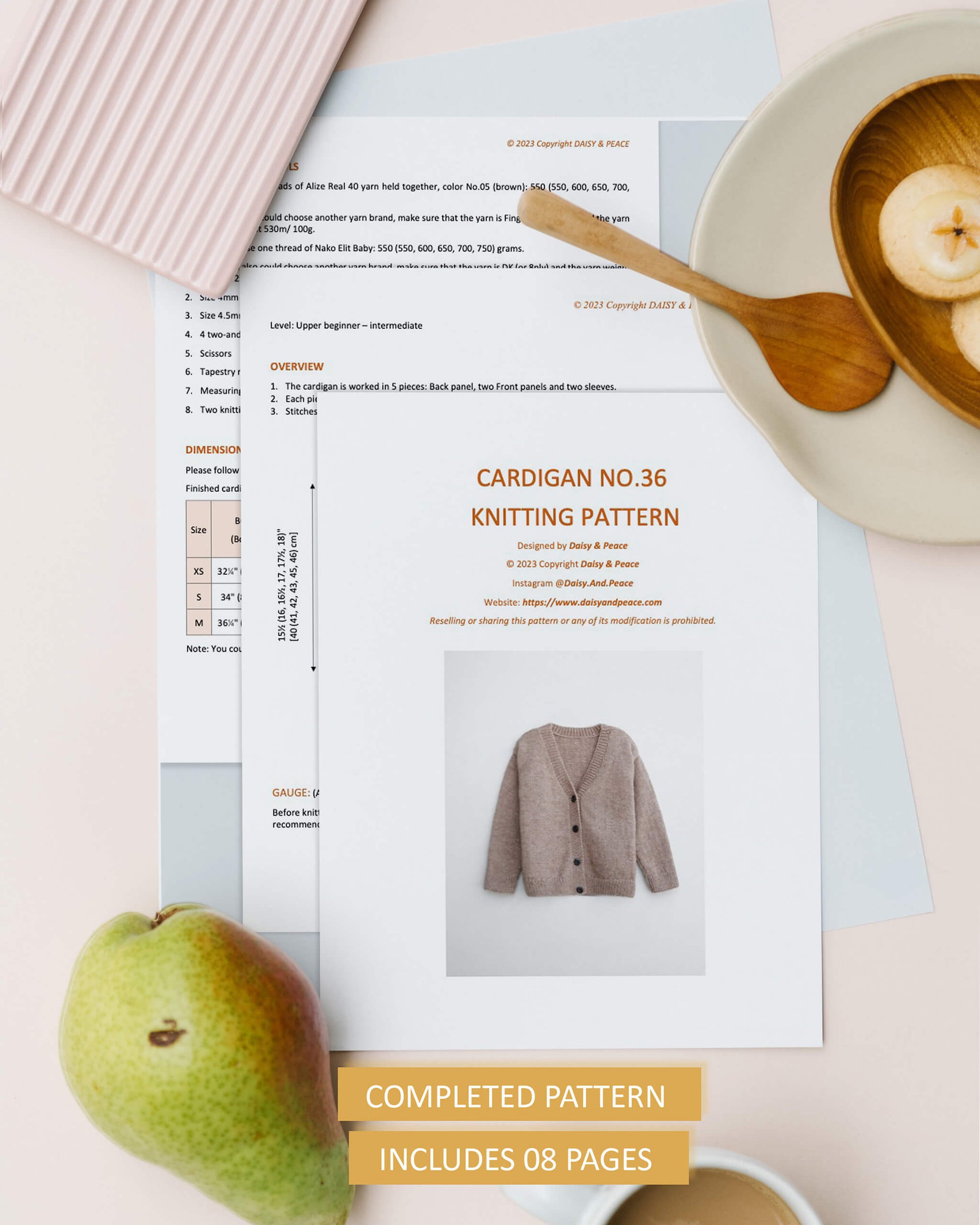 - The cardigan is worked in 5 pieces: Back, 2 Front panels and 2 sleeves. Each piece is made from the bottom up, separately and then sewn together.