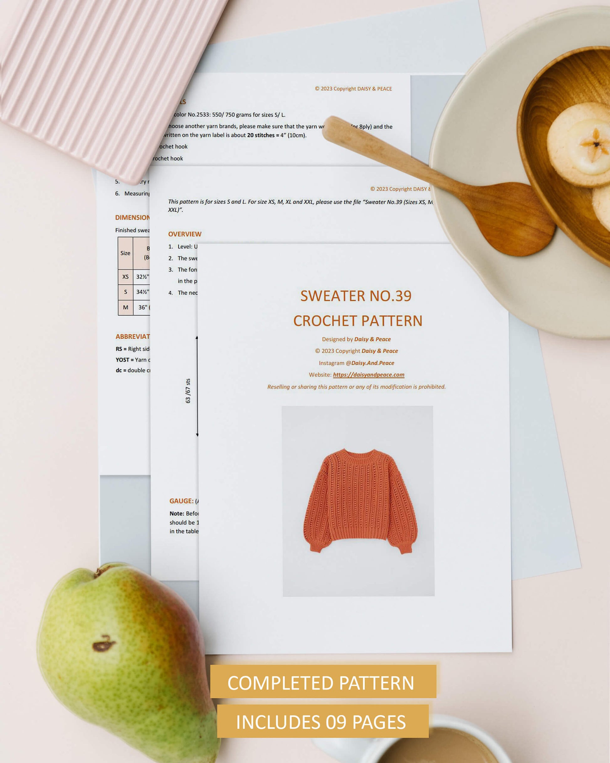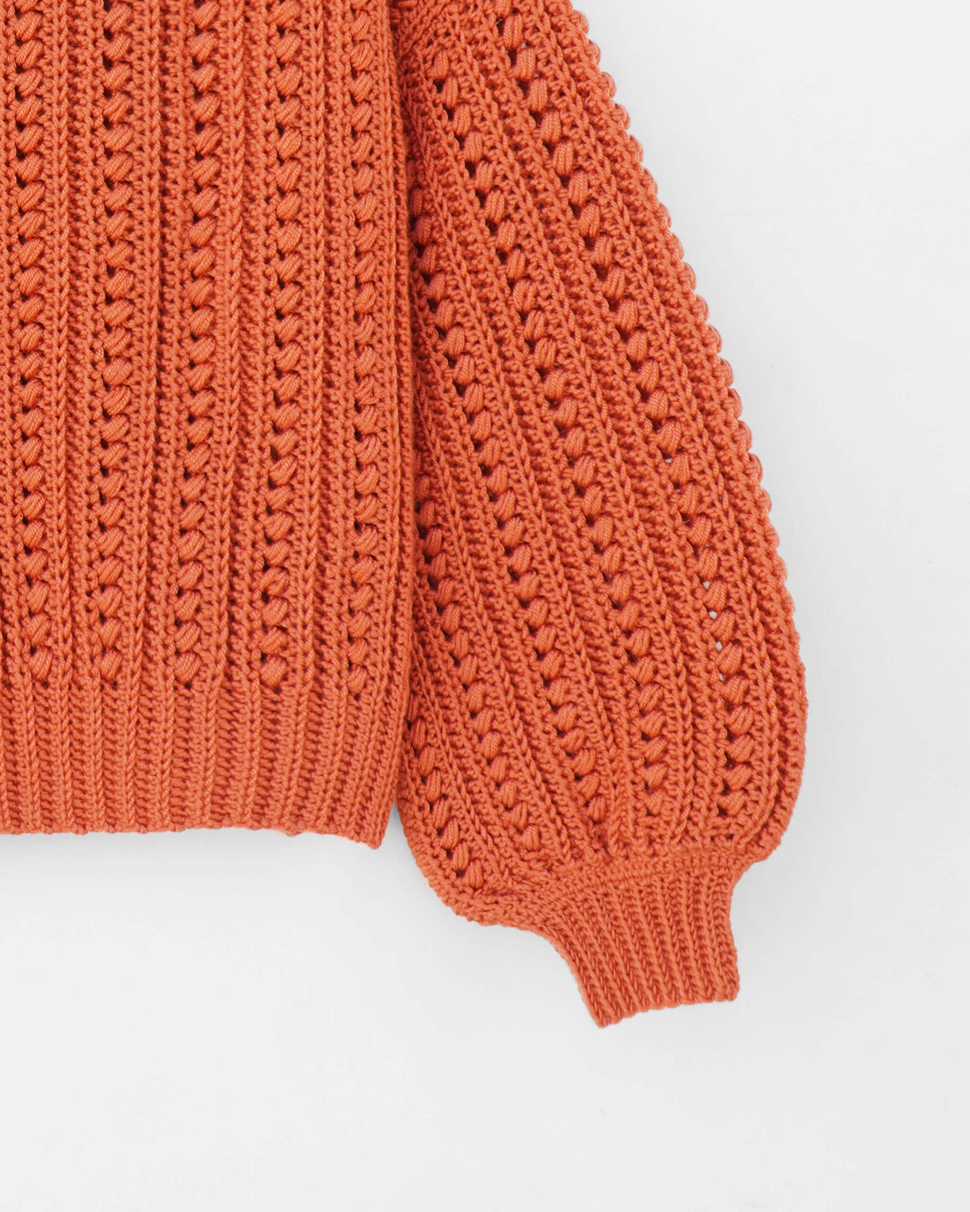 - The sweater is made from 4 pieces (Back, Front panels and 2 sleeves) made separately then sewn together.