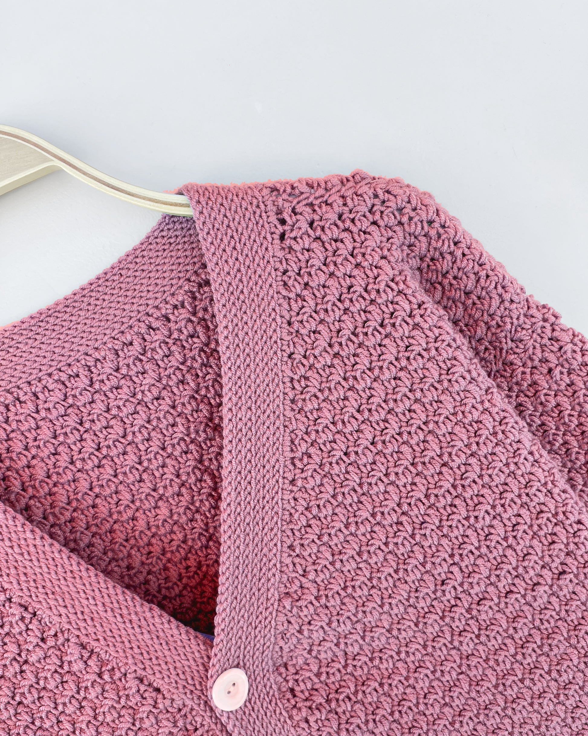 - The cardigan is worked in 5 pieces: Back, 2 Front panels and 2 sleeves. Each piece is made bottom up, separately and then sewn together.