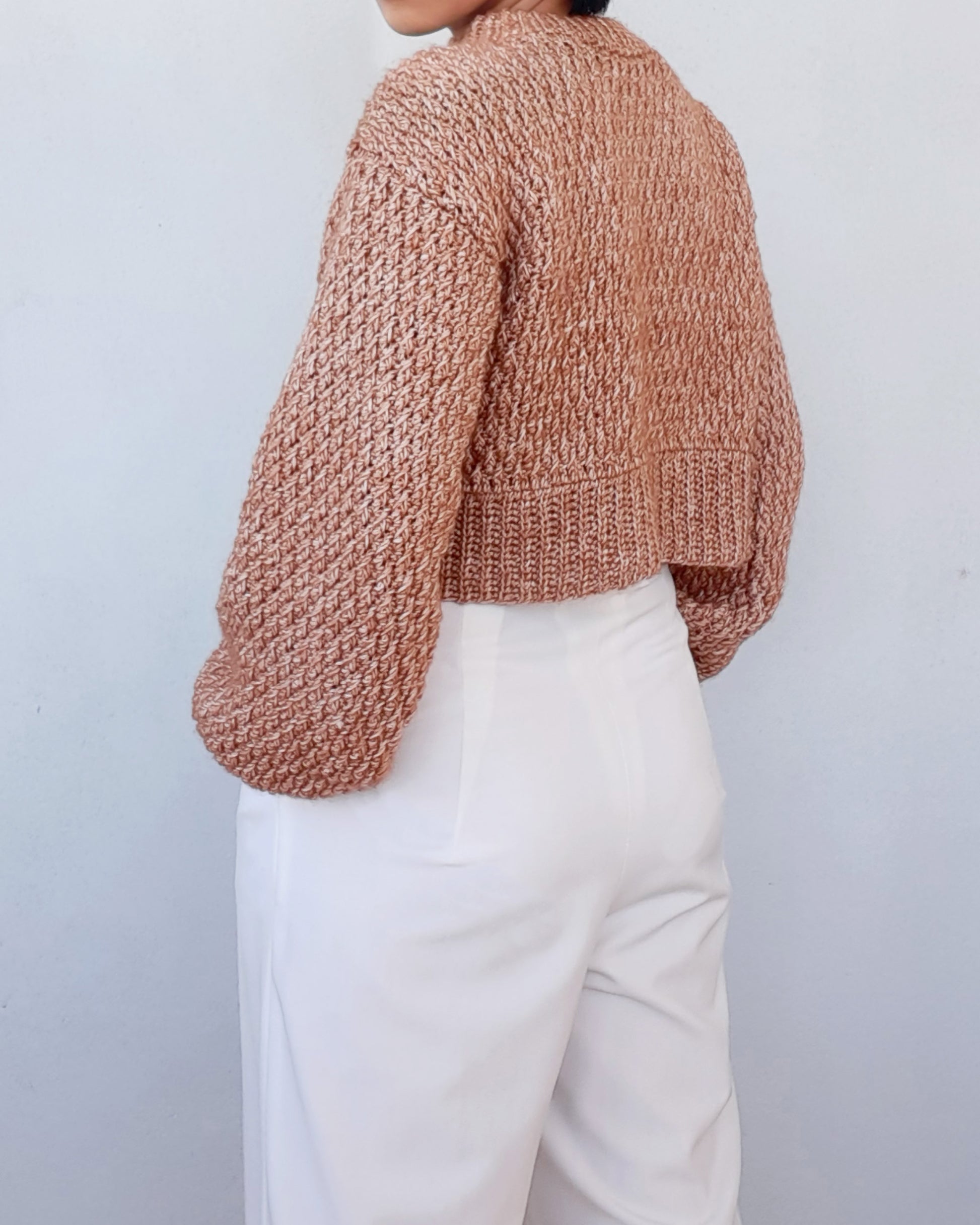 -The sweater is made from 4 pieces (Back, Front panels and 2 sleeves). Each piece is made bottom-up, separately then sewn together.