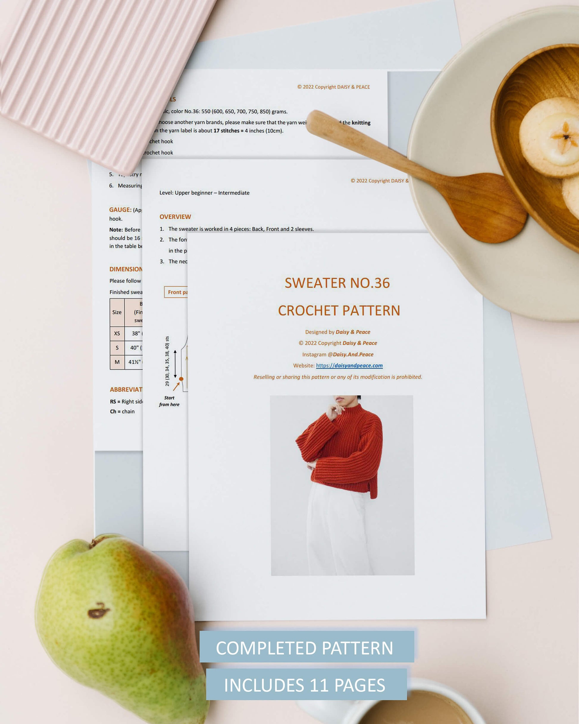 -The sweater is made from 4 pieces (Back, Front panels and 2 sleeves) made separately then sewn together.