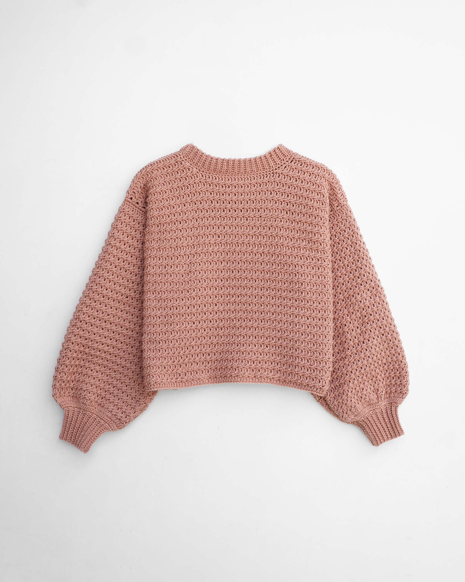 -The sweater is made from 4 pieces (Back, Front panels and 2 sleeves). Each piece is made bottom-up, separately then sewn together.