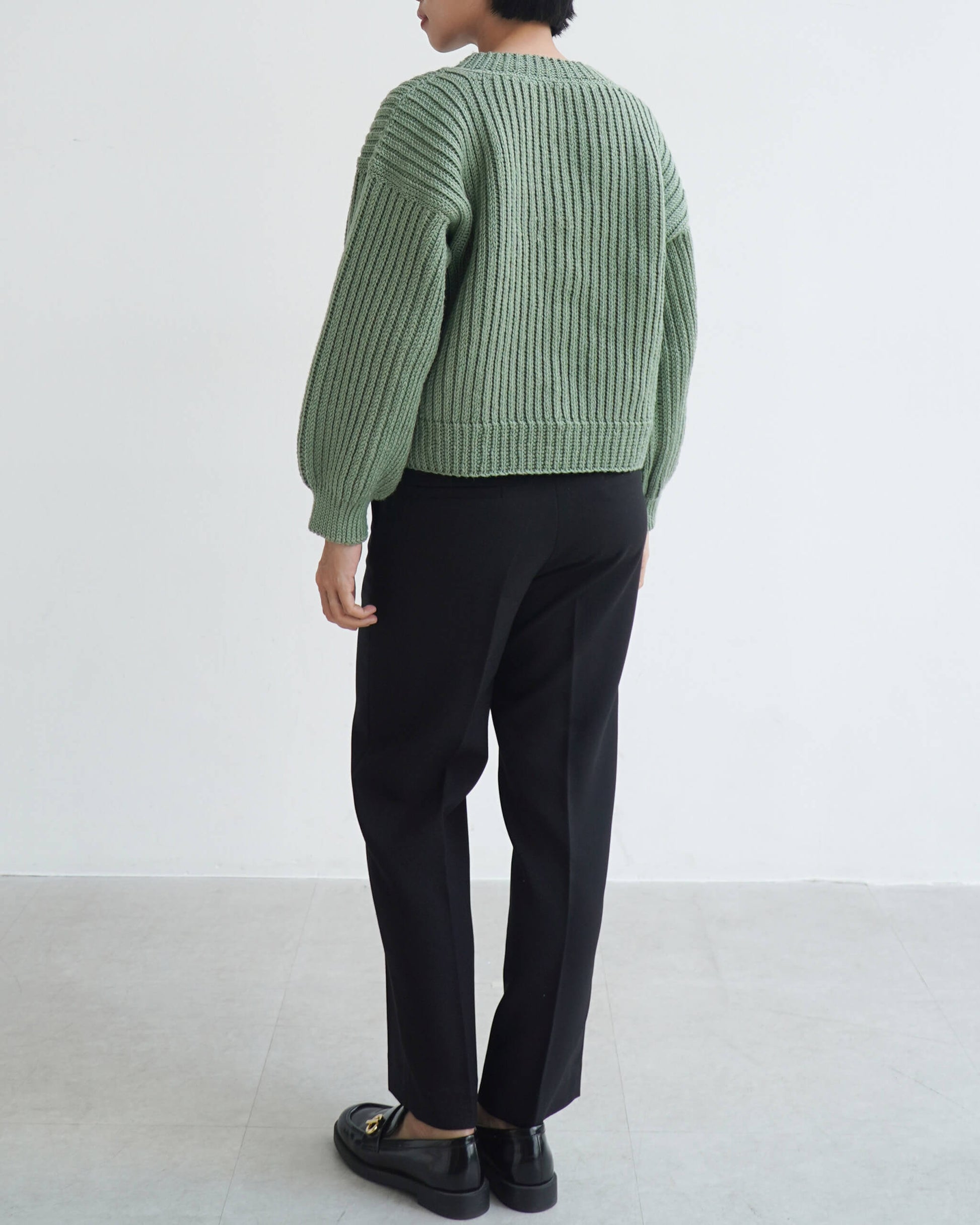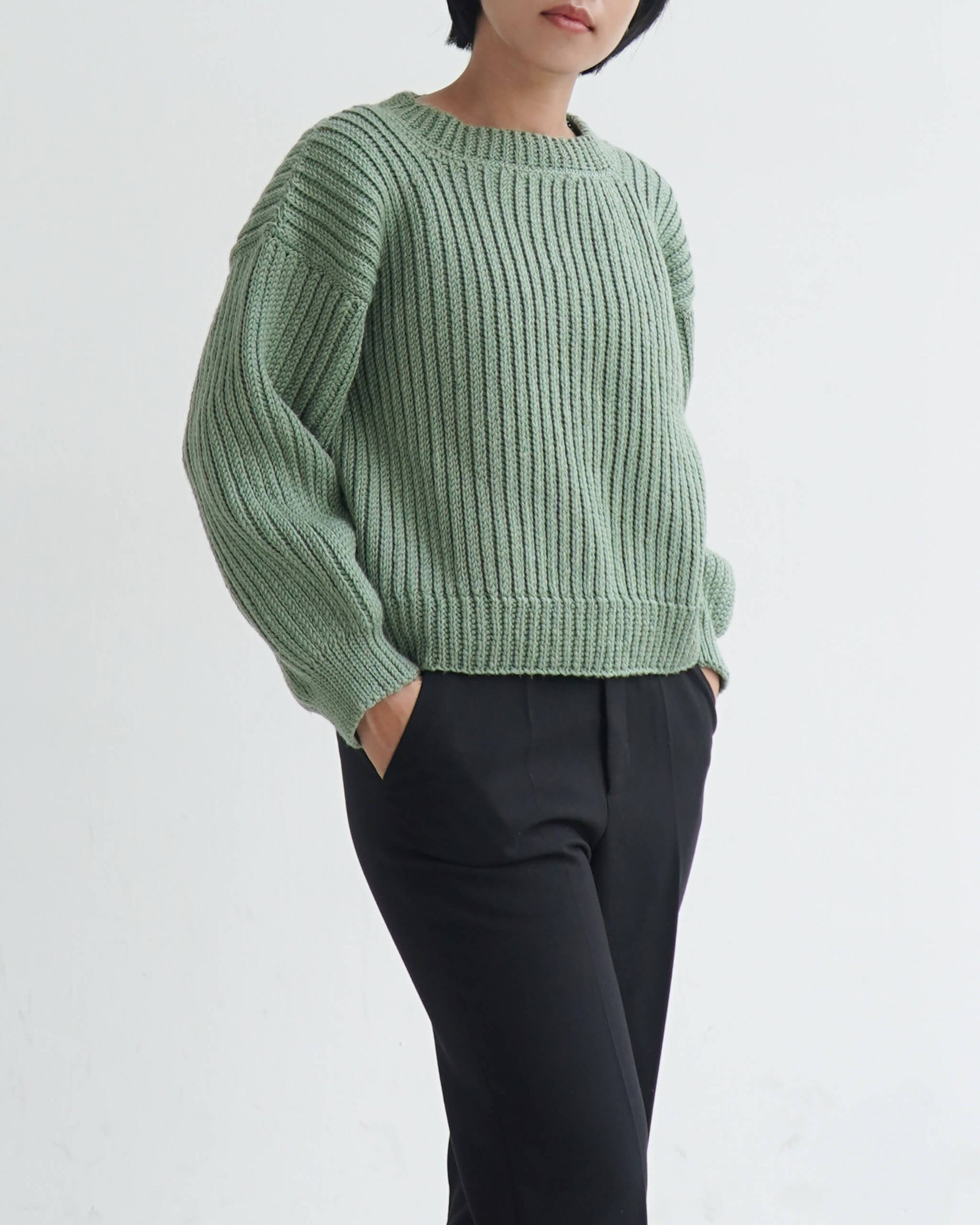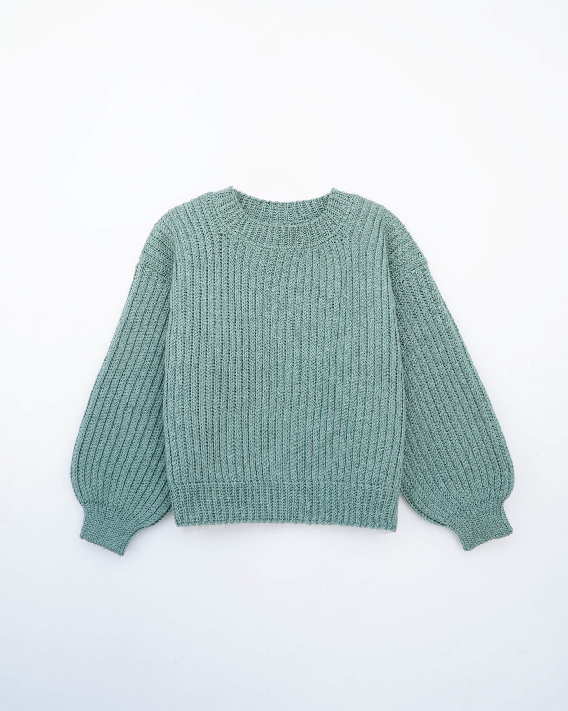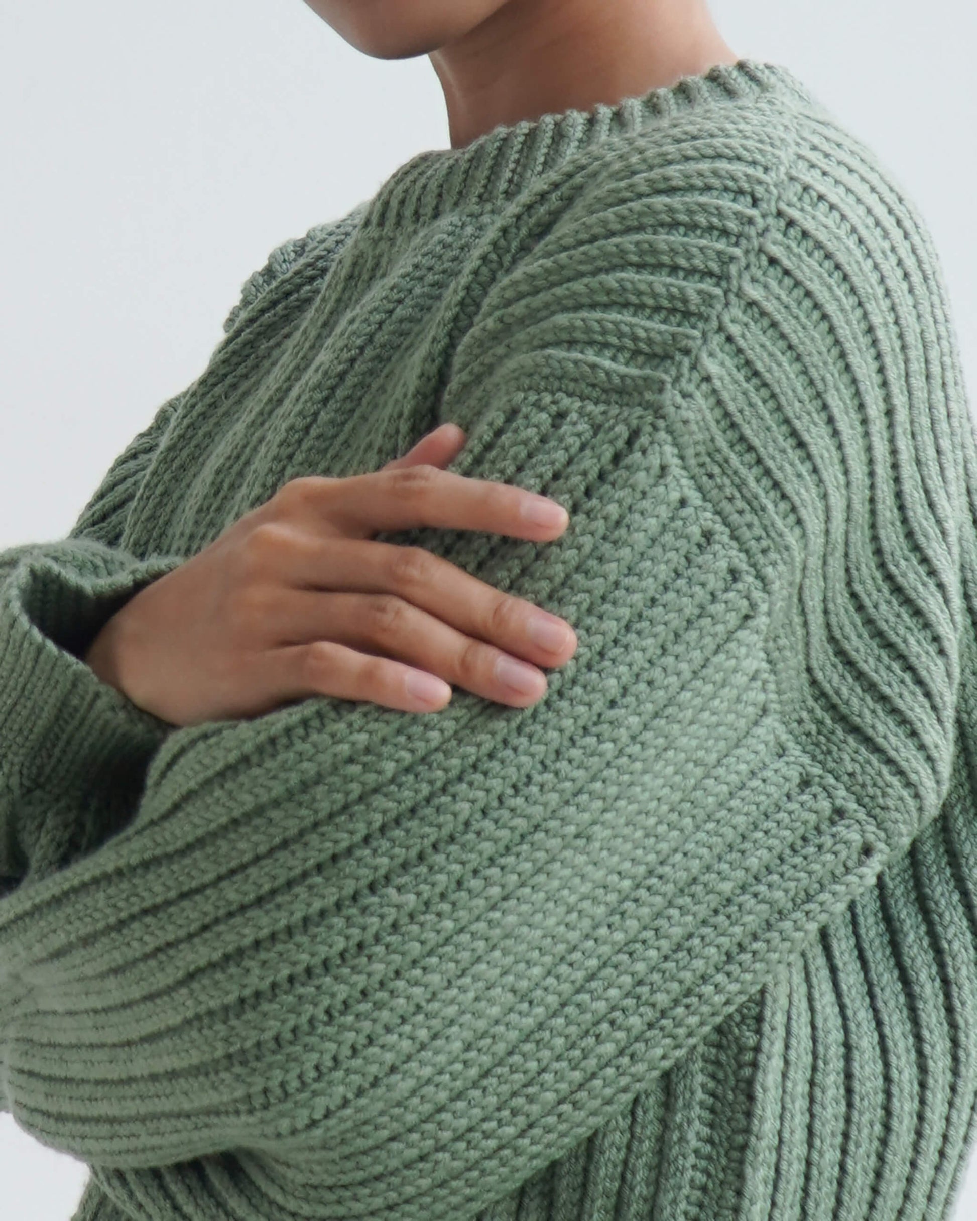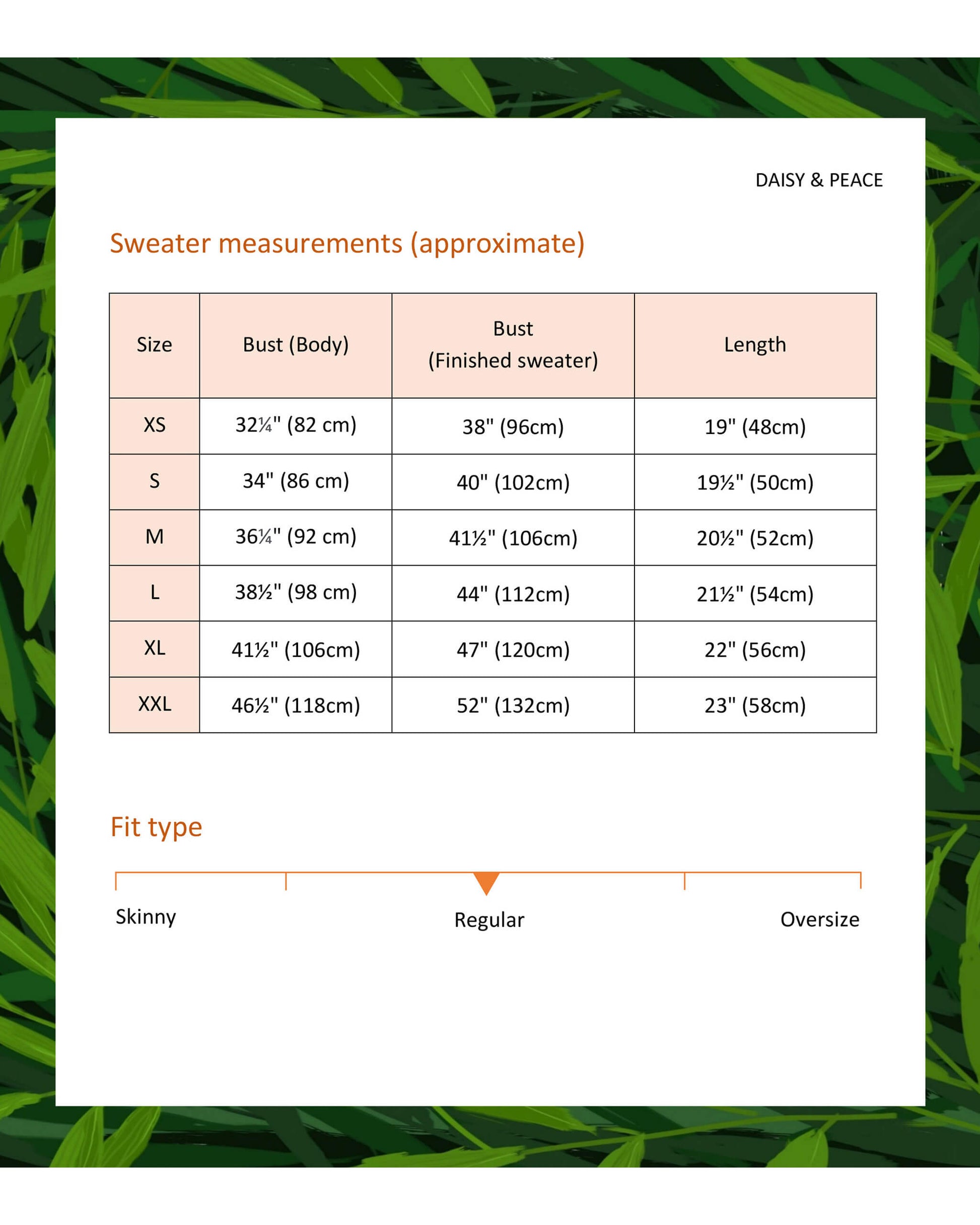 - The sweater is made from 4 pieces (Back, Front panels and 2 sleeves) made separately then sewn together.